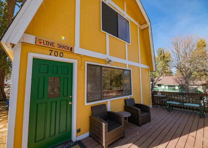 The Love Shack - Cozy Cabin In A Such A Great Spot! Very Quiet Neighborhood, situada a una distancia de 2 km de Big Bear Alpine Zoo at Moonridge, invita a los huéspedes a relajarse en un jacuzzi. La villa ofrece acceso a un patio soleado y se encuentra a una distancia de 6 km de la Estación de esquí Snow Summit.